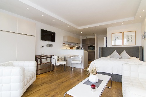 Edle, helle und moderne Einrichtung mit Designermöbeln